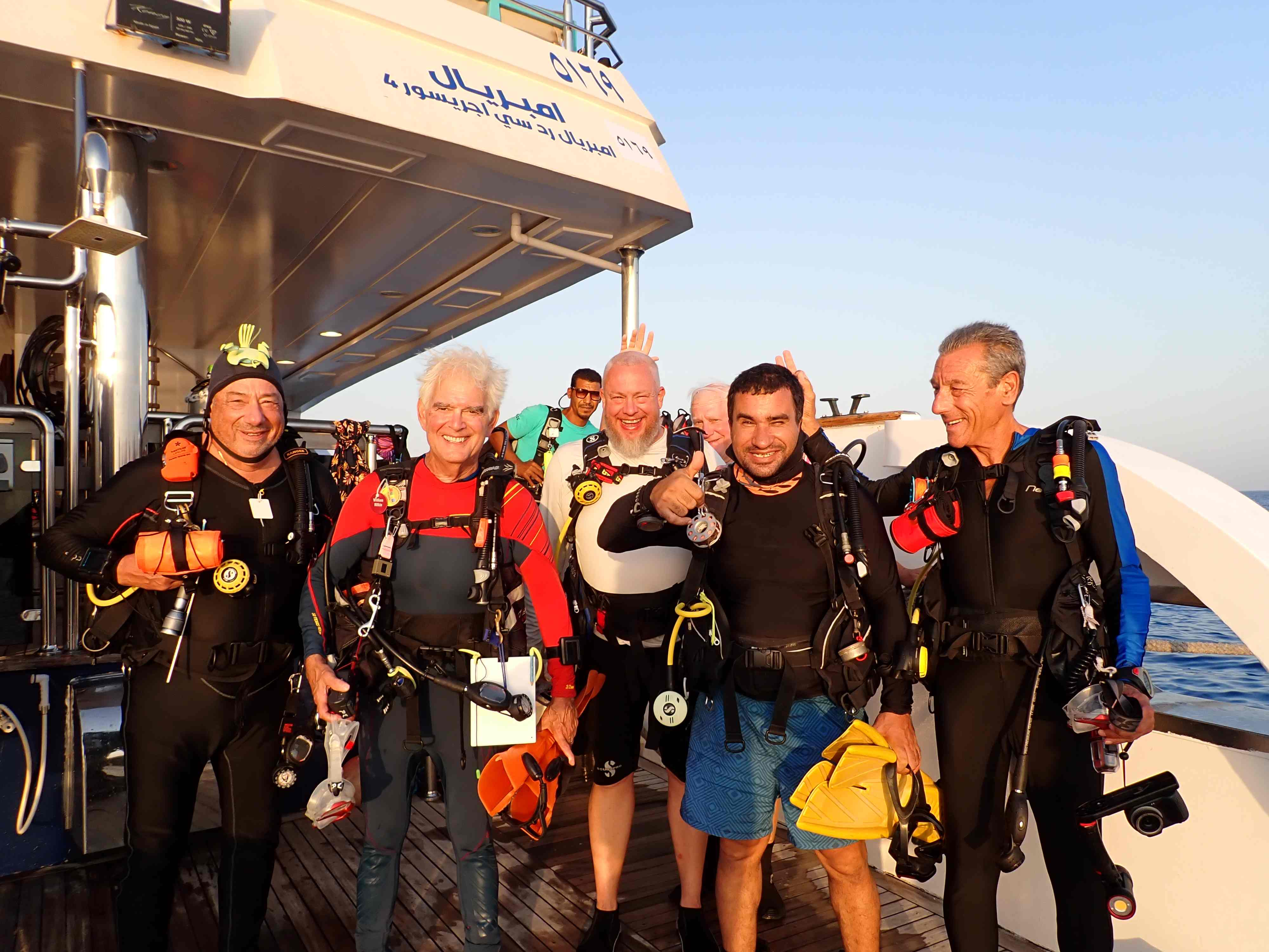 Crew – Captain – Hassan Ali – Dive Team – Amr - Moaz – Donia – Amr youssif – Stewards – Khalid & Ali Chef – Awadalah – Pastry Chef – Mohamed – Engineers – Shaban – Mohamed – Seamen – Khalid Mansor, Ahmed & Amr – Mahmed Saad