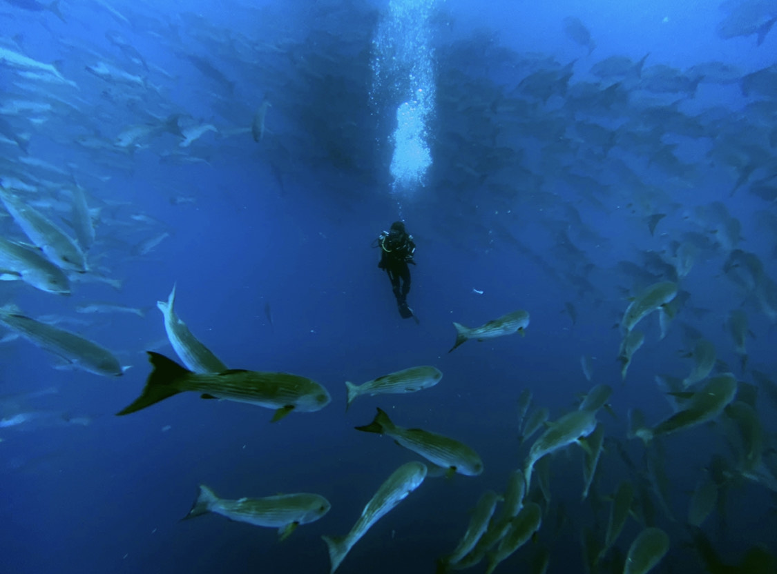 Dos amigos grande has a large arch full of life and at the end we managed to see at the stop of security a large school of hammerheads. This arch is absolutely perfect for underwater pictures.