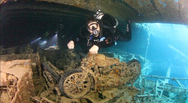Dive 1 - This dive was a complete inside tour of the Thistlegorm. Guests followed the guide into the lower level of the wreck seeing all the rifles, trucks, battery covers, motorcycles, plane spare wings before heading to the upper level seeing more motorcycles and trucks. The inside is like a WWII museum. We also saw a lot of marine life including batfish, jacks, nudi brancs, scorpion fish and much more. Breakfast was served and the guests relaxed.