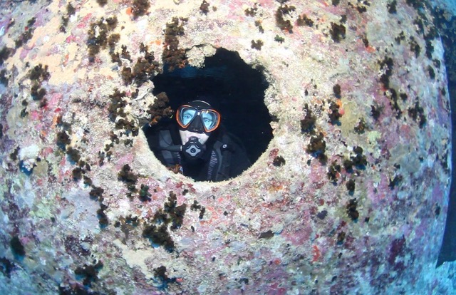 Dive 3 – Salem Express. We jumped from the back of the boat and did the dive from inside The holds are packed full with the passenger belongings; suitcases, children’s toys, cars, rugs, electrical items all bought in Saudi on their holiday. Very emotional and for real dive seeing so many personally possessions inside then we went to the restaurant then to the Capitan bridge.