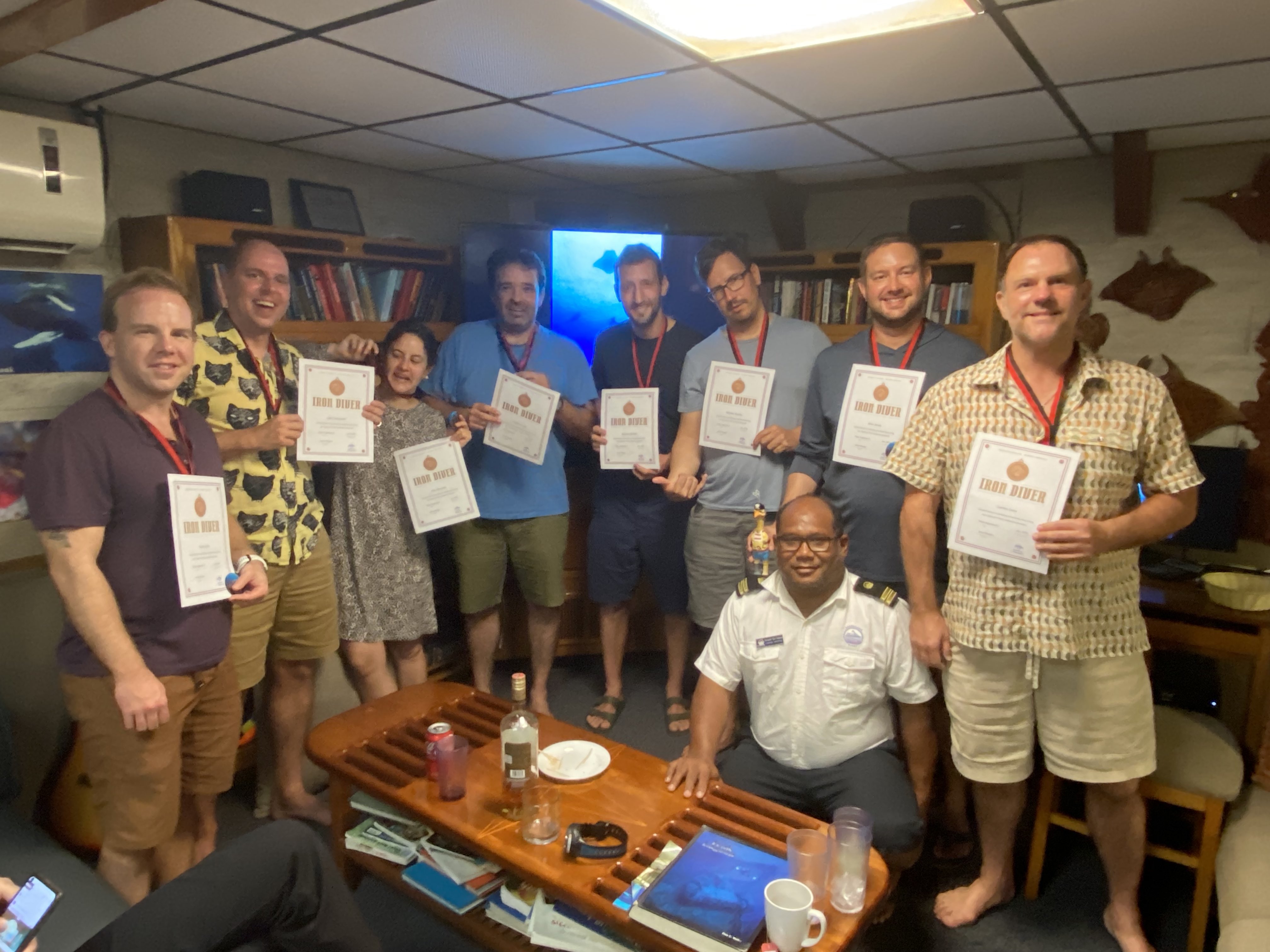 We did 2 dives here in the harbor and rested in the afternoon. Cocktail party at 6 and gave out the Iron diver awards.
