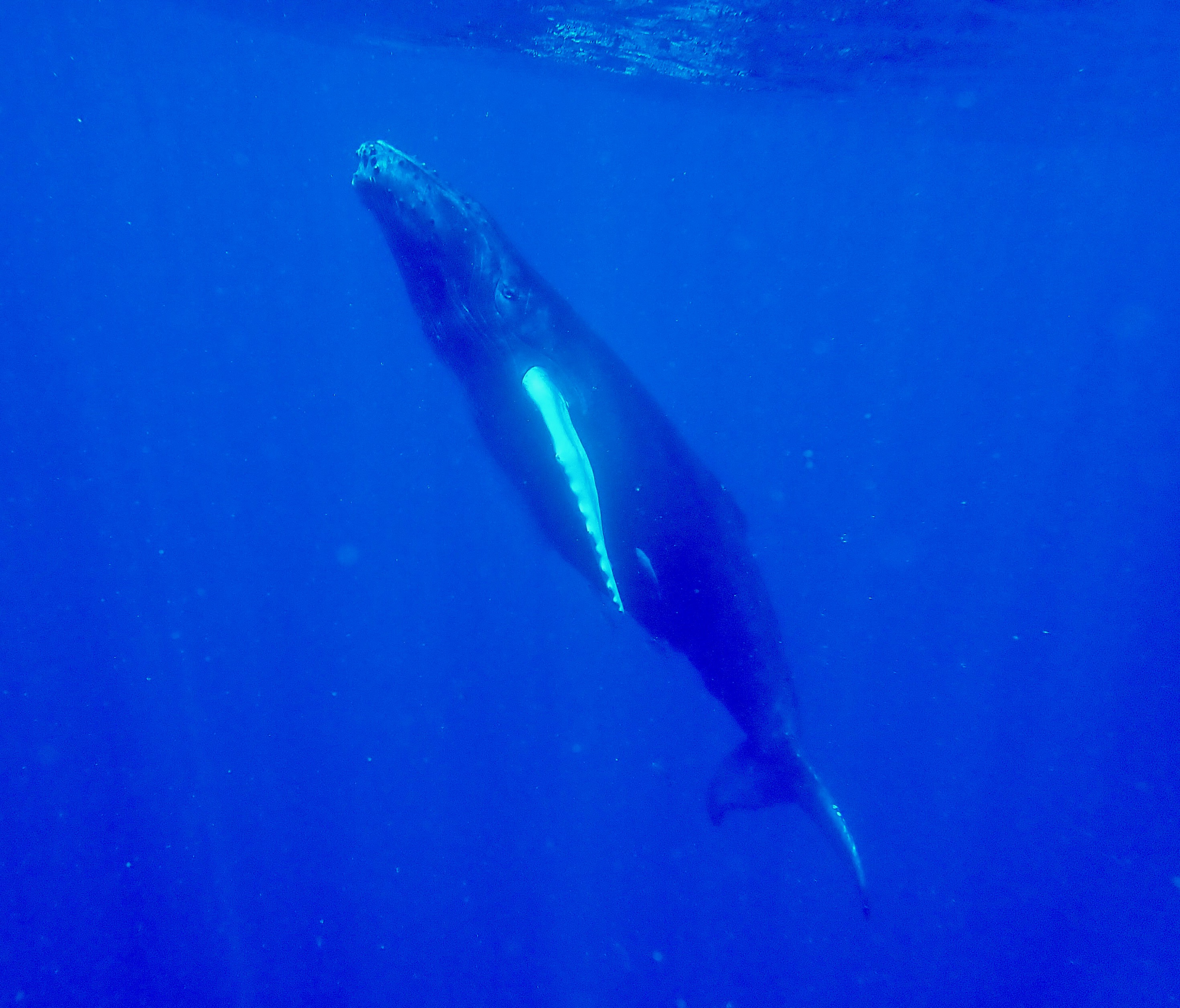 Wonderful Wednesday started the way yesterday ended with having Encounters with Mothers and Calf just about all day. Most of the Calves were playful and Mom was okay with the playfulness. We enjoyed lots of in-water and close interactions with these Amazing Mammals. As guest David said “I never had a Whale Swim less then 10 feet from my face”. It’s awesome to hear very different stories from divers in the same group seeing the same Whale, Yet Experiencing Some Totally Different. It is such a Wonderful Feeling that when someone talks about their experience you can see the feeling in their face and small tears in their eyes. I know I still get Goosebumps when I tell stories or show pictures of encounters I’ve had, even old ones.