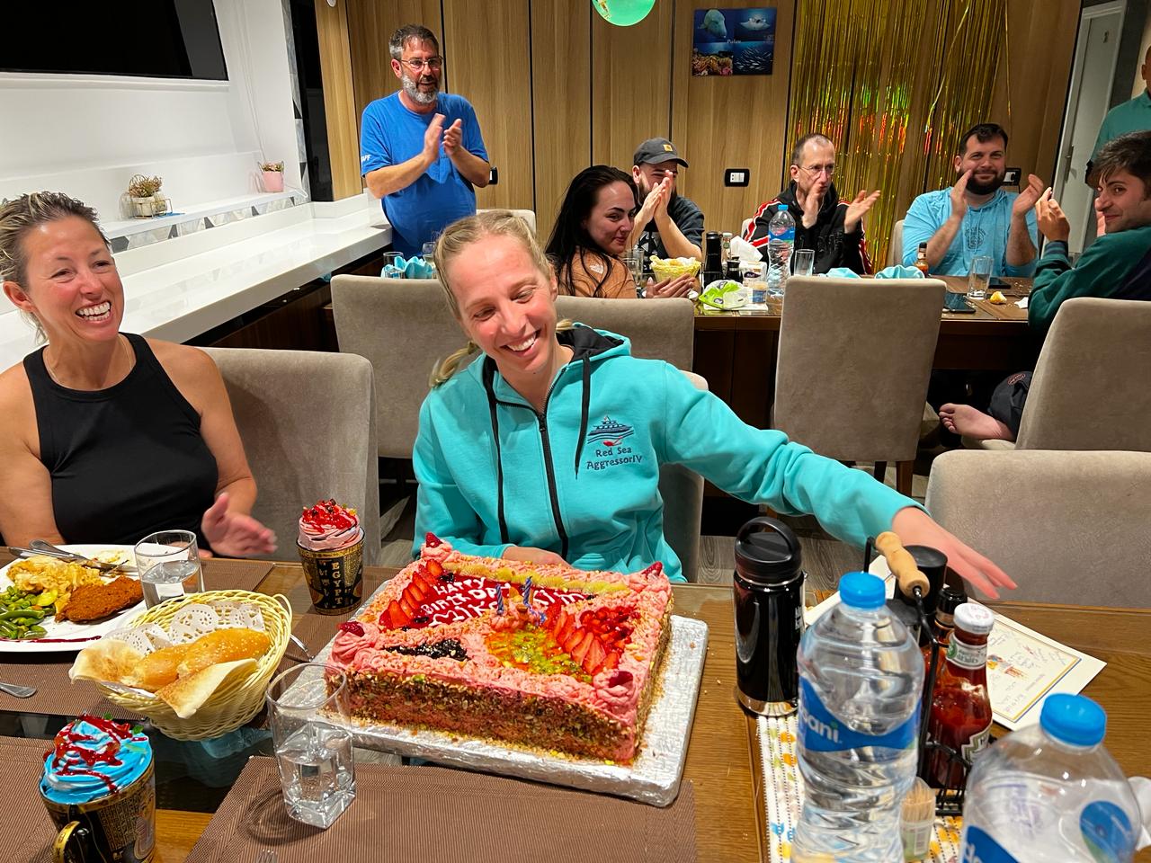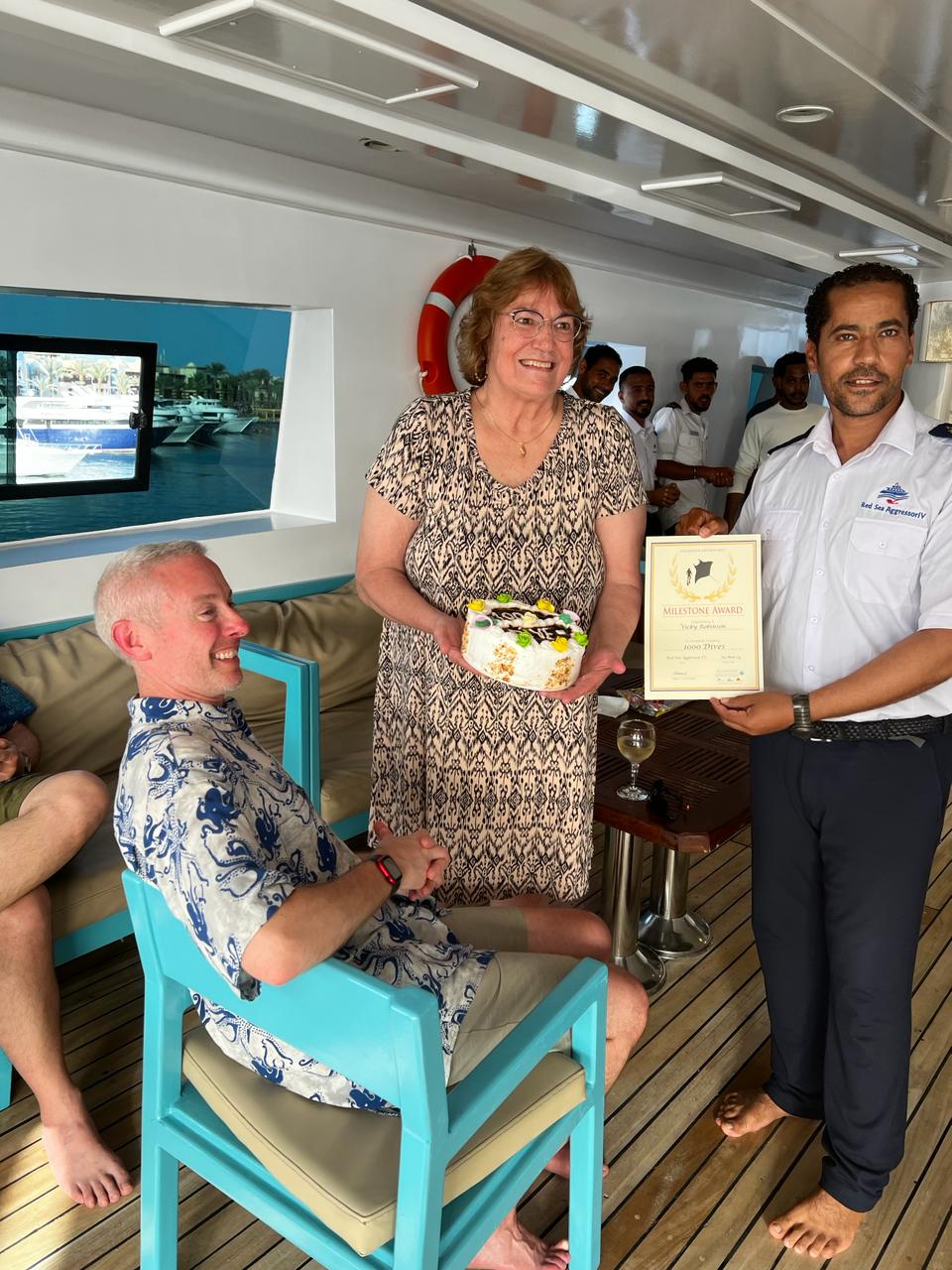 We finally sailed back in after another successful weeks diving having the cocktail party at 4pm. We congratulated 3 Iron Divers, and Advanced Open Water and Nitrox courses completed. We celebrated Vickys 1000 dives with a cake and Dive Guide Donya on her 30th birthday, also with a cake. In total our guests competed 442 dives, only 15 dives short of the charter record.