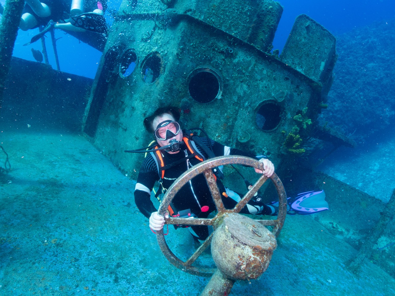 At dawn, we dived the Keith Tibbetts Wreck, its 330-ft frame draped in sponges and thriving with reef life.