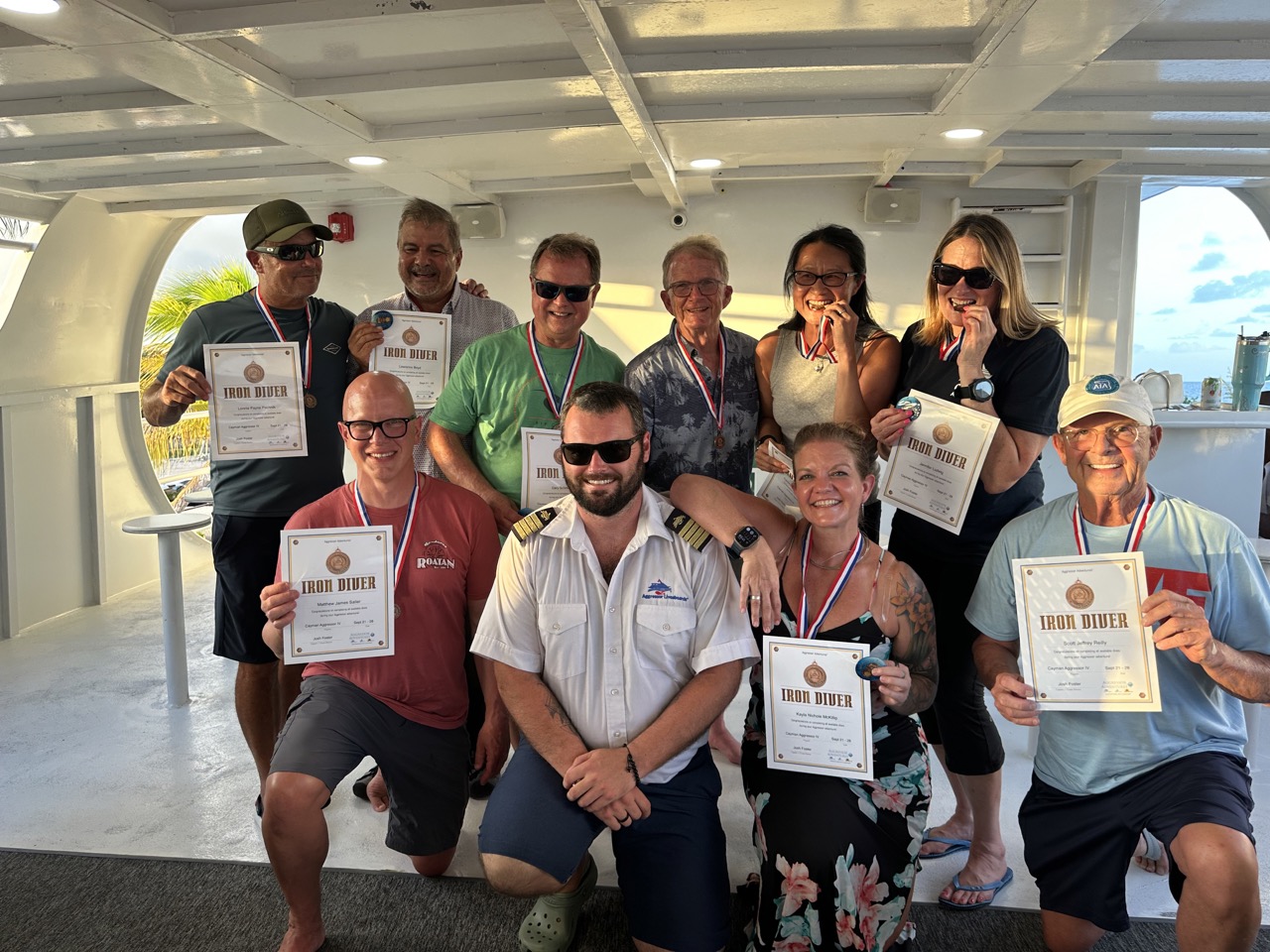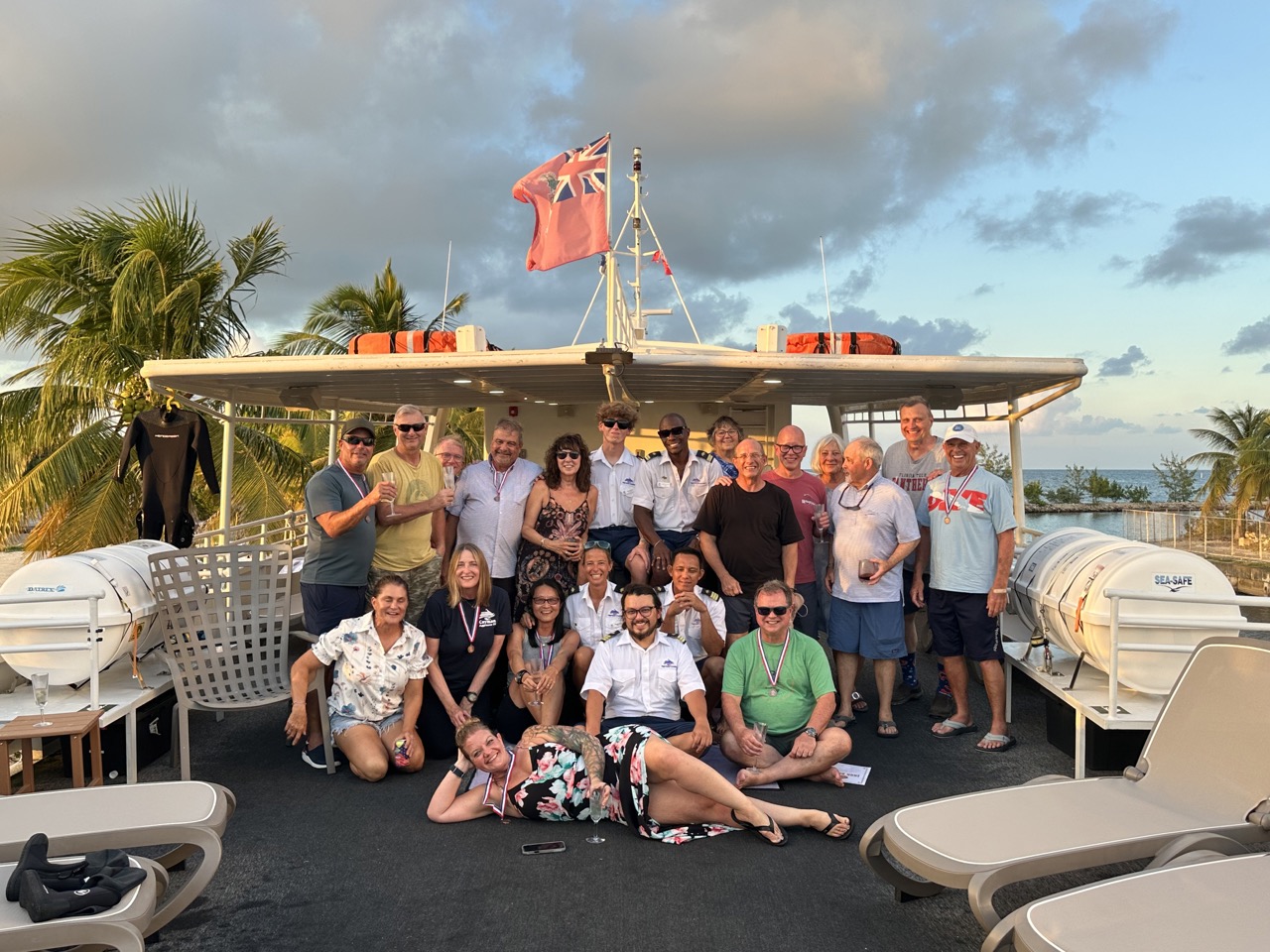 Back on board, guests enjoyed Fabian’s steaming lasagna before we docked at the Barcadere. The week concluded with a lively wine and cheese party on the sundeck, filled with laughter, photos, and congratulations. Nine Iron Divers were celebrated for completing all dives, while Bambi achieved Advanced Open Water certification and Laurie earned her Nitrox certification.
