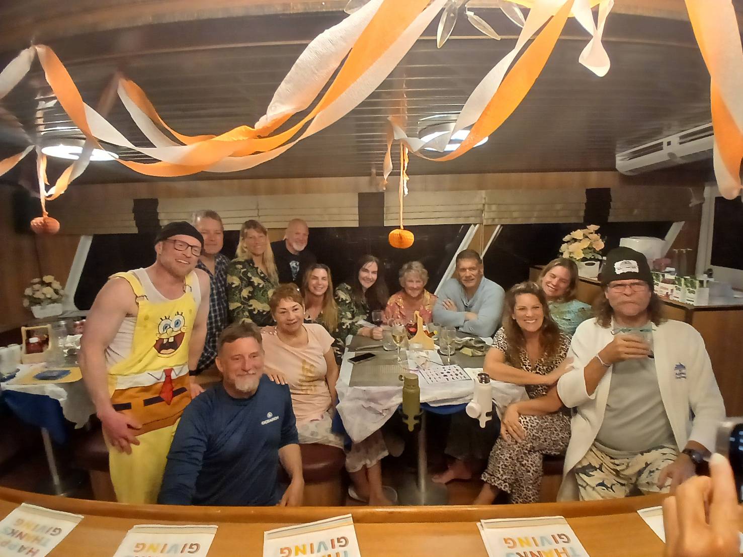 A four-hour return to port followed, and that evening we hosted a final barbecue — seafood, fresh meats, Thai seasoning, and great company. Six guests earned Iron Diver recognition: Marc, Eric, Greg, Kristin, Chandra, and Janina.