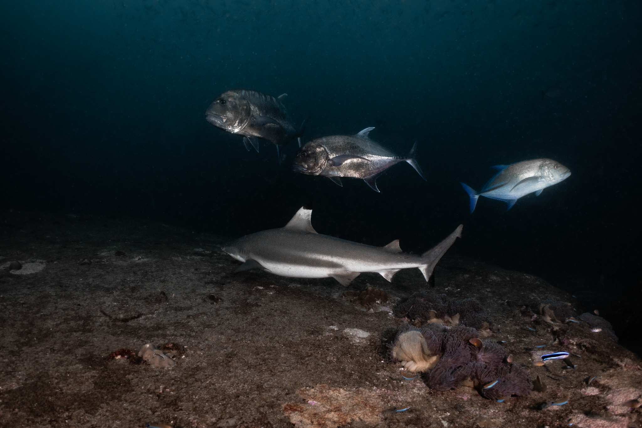 At sunset we descended into Tachai Reef where blacktip reef sharks patrolled in the dark, circling curiously at the edge of our lights. Unforgettable.