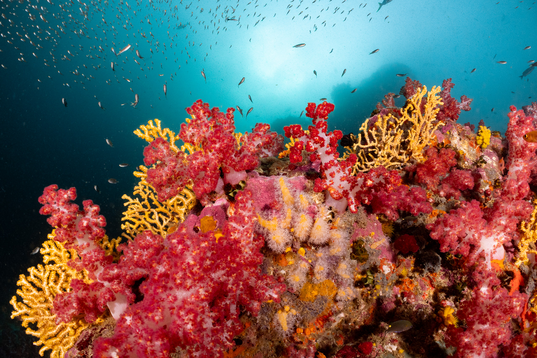 Our last full day of diving began at Tachai Pinnacle, rich with hard coral, soft coral, sea fans, and dense fish traffic in every direction.