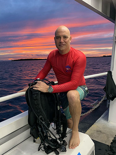 Born in Clearwater, Florida, and raised in Dover, Arkansas, Jay developed a love for exploration at an early age. Today, he lives in Augusta, Georgia with his wife and children, sharing that same spirit of adventure with his family. Some of his most meaningful memories have happened aboard Aggressor yachts, from certifying his son as a diver to watching his daughter take her first steps onboard.